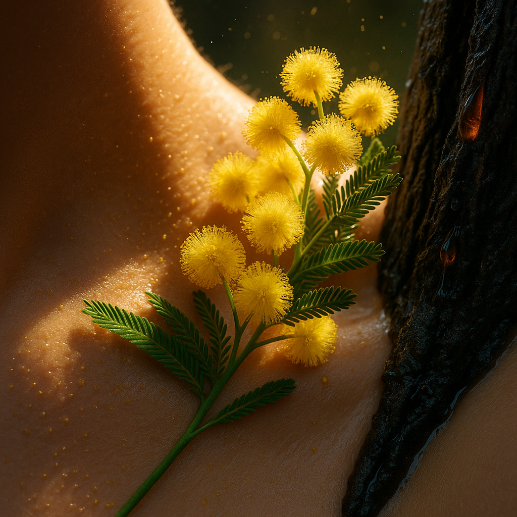 I’m picky with mimosa. Too often it leans cosmetic and coy, a pretty veil that forgets there is a tree underneath. What pulls me toward Acacia is the promise of contrasts. Mimosa has this almond dust and honeyed pollen, yes, but there is also cool green stem, salty bark, and a sunlit hum that can read almost metallic. In the right hands it becomes a photograph in motion, not a filter. Rasquinet tends to find that tension between radiance and texture, and that is exactly where mimosa lives.