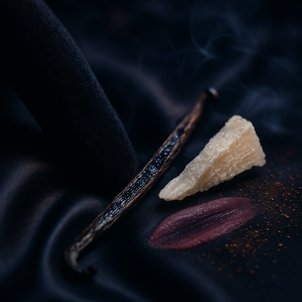 The heart is where it gets decadent. There’s that bourbon vanilla you’ve heard about, round and mouthwatering, but it never melts into cupcake territory. Orris steps in like a poised chaperone, cool and buttery, bringing a polished lipstick vibe that keeps the sweetness taut. On my skin, Hez Parfums 504 Extrait de Parfum wears like satin with a spine. I get a whisper of powder, a mineral chill, and something shadowy that reads like a fine cocoa dusting. No sugar rush. More midnight pantry raid.